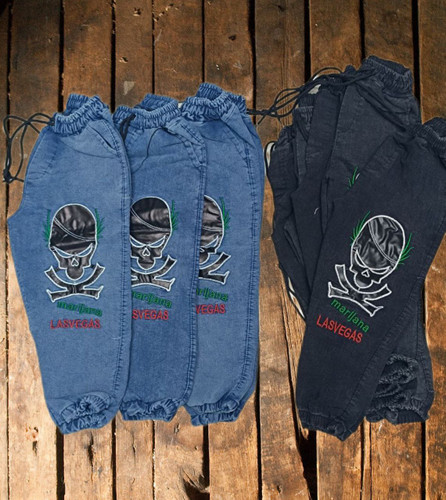 شلوار لی چهار جیب نوجوانانه گلدوزی جنس : نیل صیدان سایز : ۹۰-۹۵-۱۰۰